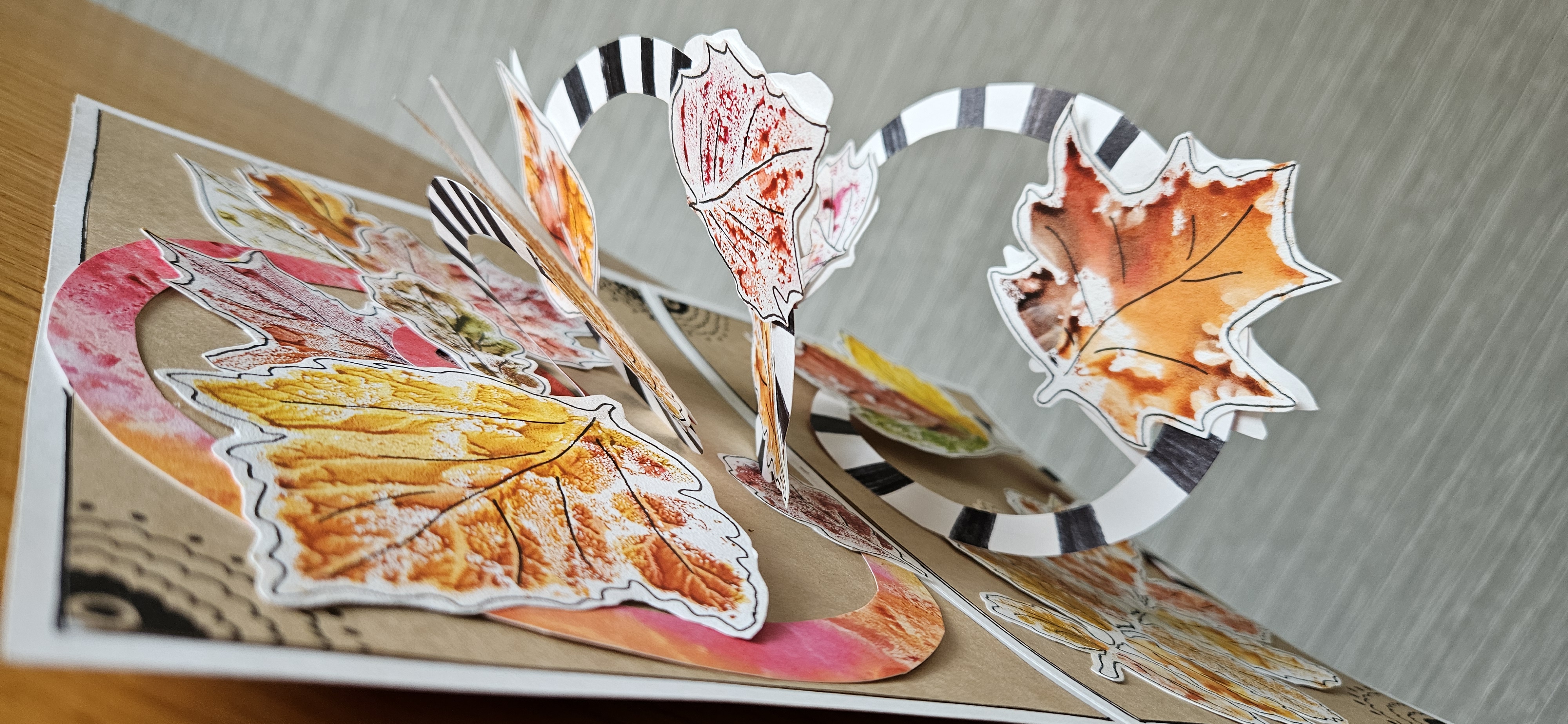 Создадим свой вихрь осенних листьев в формате поп-ап открытки.