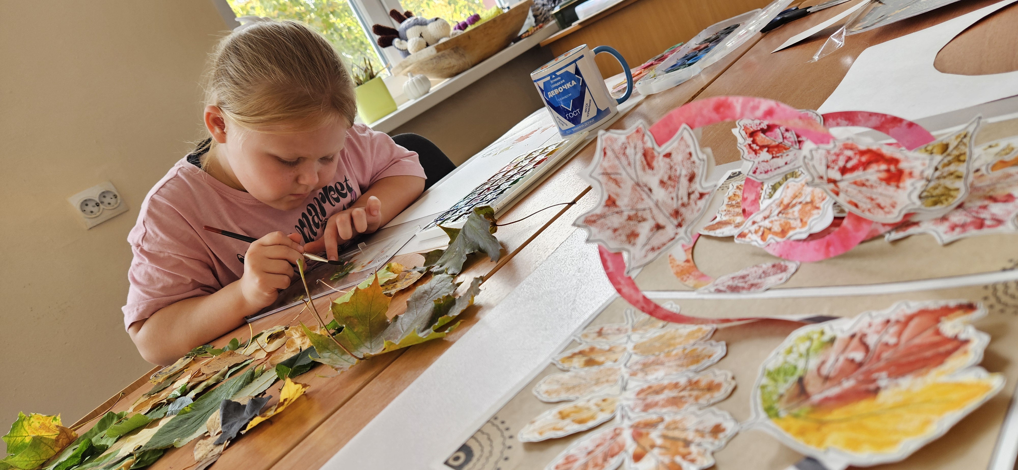 В четверг ребята с удовольствием познакомились с механизмом "пружинка", акварелью, лейнерами, изготовив яркую осеннюю поп-ап открытку. А в пятницу создавали именные брелоки в технике макраме. У всех всё чудесно получилось!