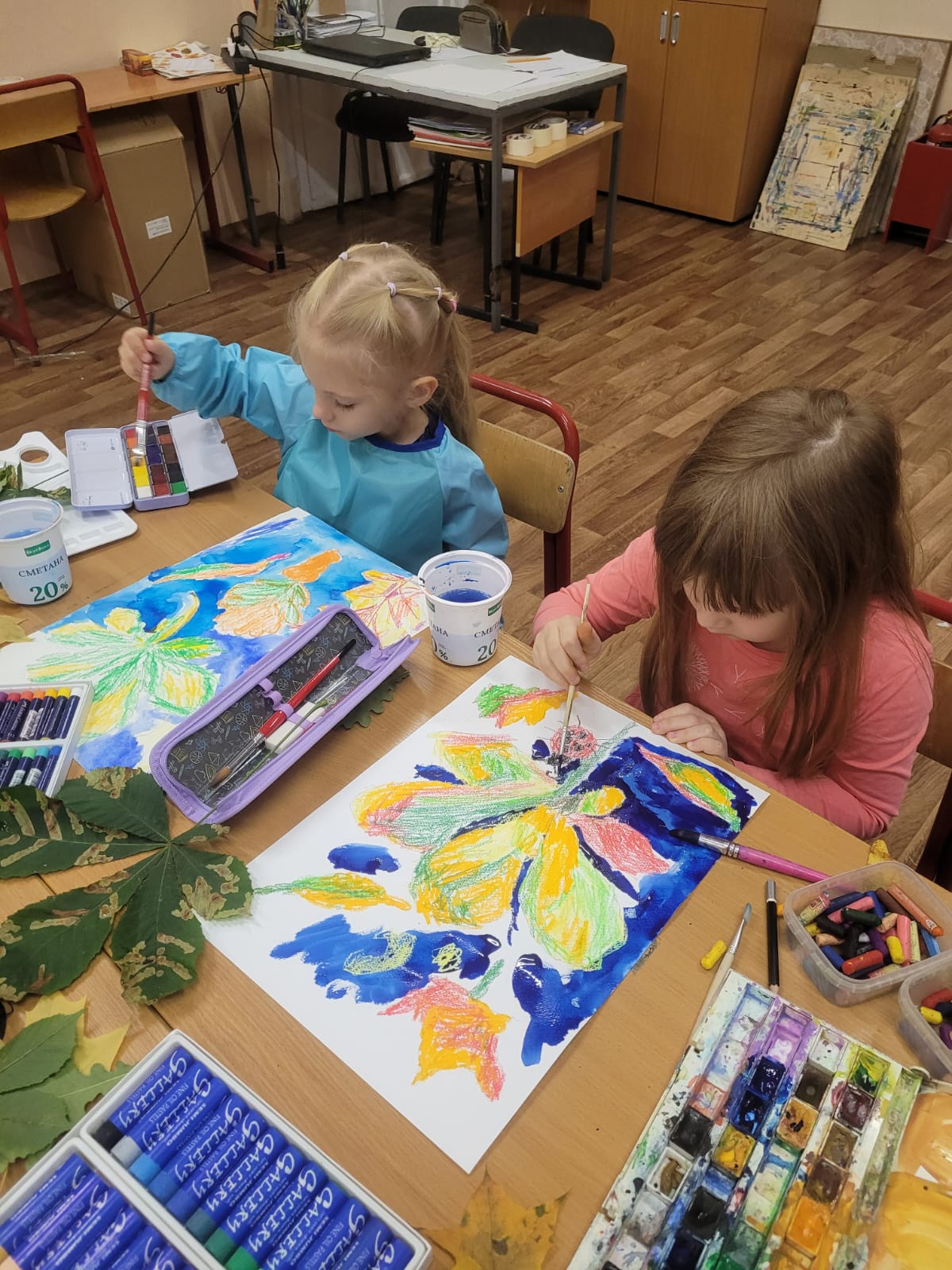 Группа "Юный художник" начала свою работу. Рисуем листопад и делимся осенним настроением.