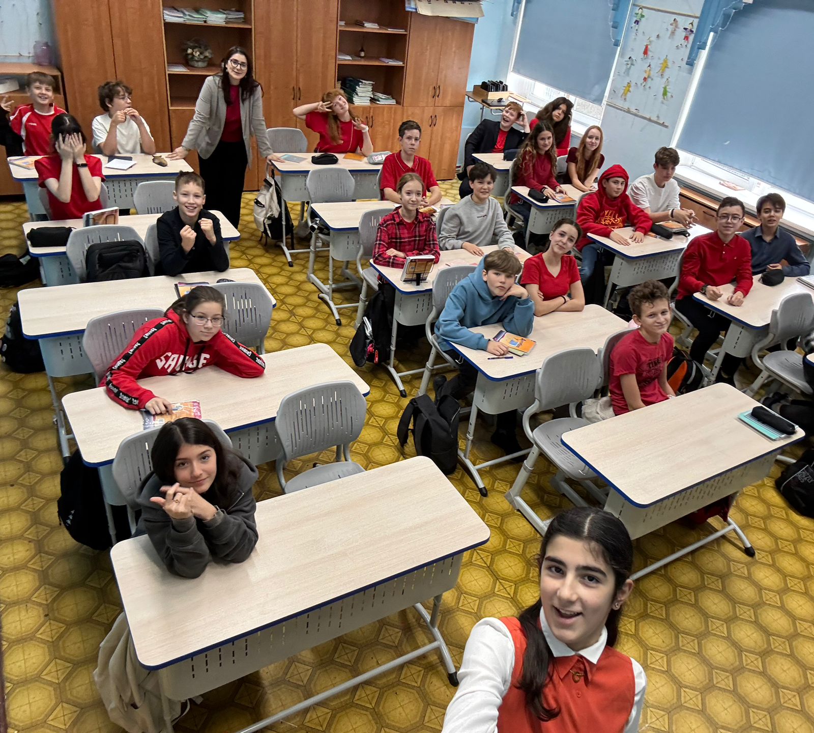 В нашей школе №97 есть замечательная традиция: в последнюю пятницу каждого месяца мы все вместе одеваемся в определенный цвет. Сегодняшний день был особенно ярким, ведь все мы выбрали красный! Это создает такую праздничную и единую атмосферу.