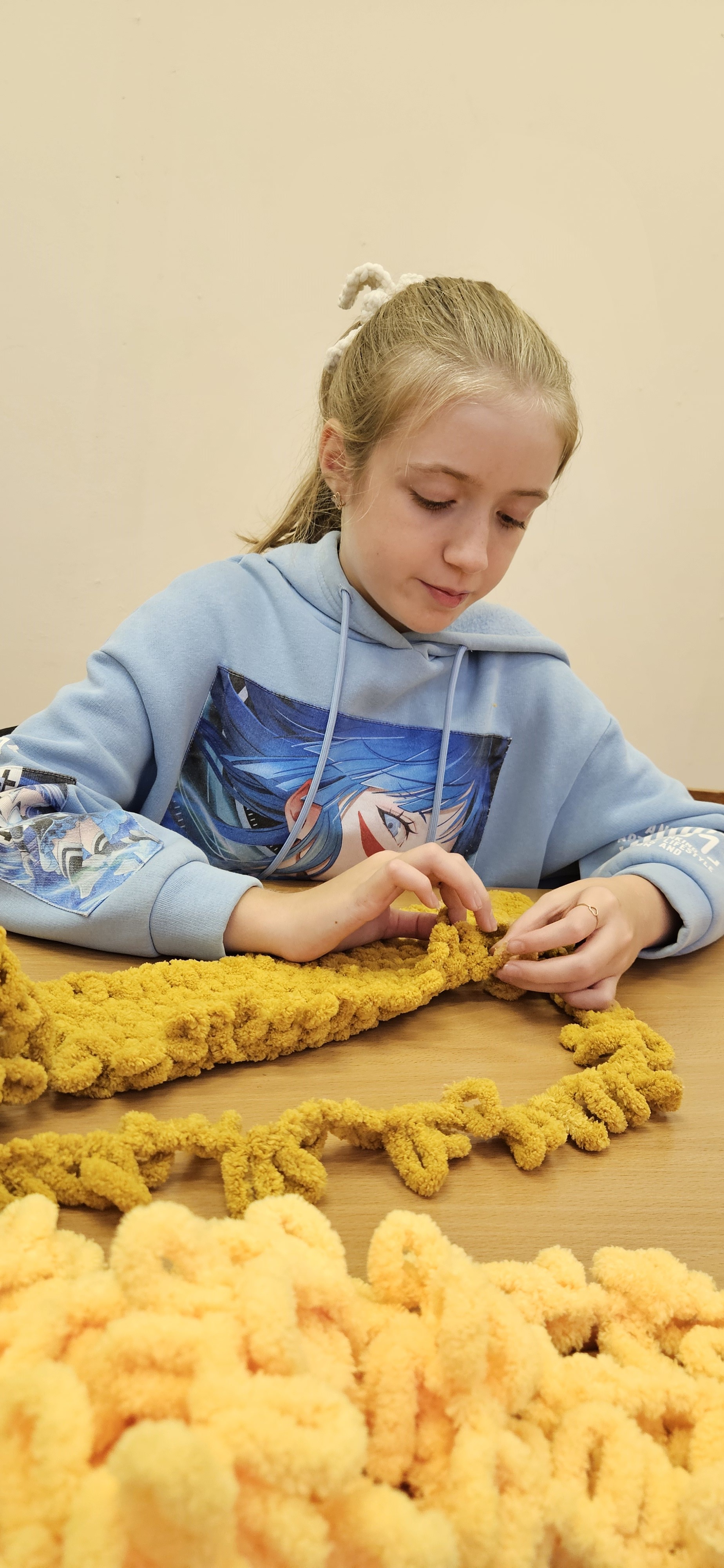 А это самое лучшее время, чтобы начать мастерить уютные мягкие изделия из пушистой пряжи. Чем и занялись ребята на прошлом занятии. Результатом их старания будут петельчатые подушки, которые создадут приятную атмосферу дома. Не всем сразу далось легко, но мы верим, что у всех всё получится. А кто-то так вдохновился, что по окончанию этой работы готов браться и за плед.