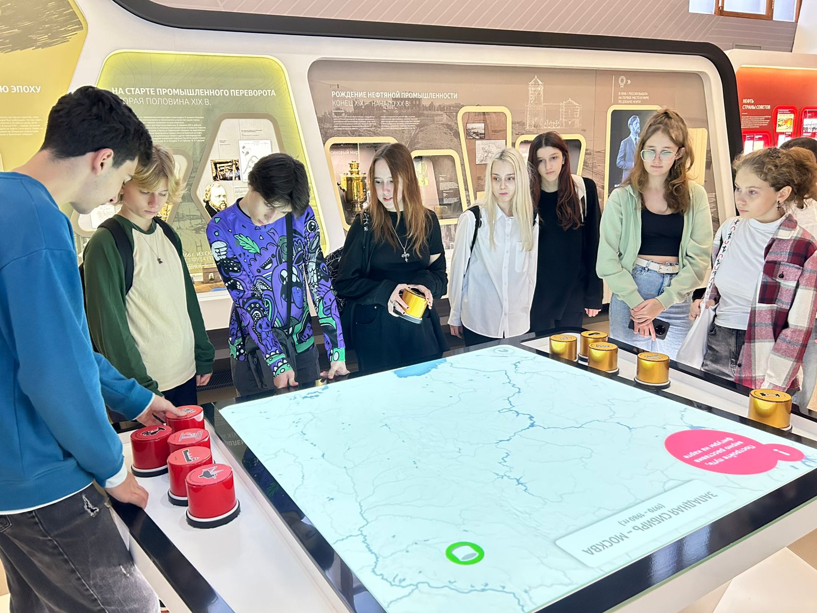 В конце 1 четверти 9Б/3 и 7Е совместно с классными руководителями посетили обновленный павильон «Нефть», где все познакомились с полным производственным циклом вертикально-интегрированной нефтяной компании — от добычи до переработки и реализации.
