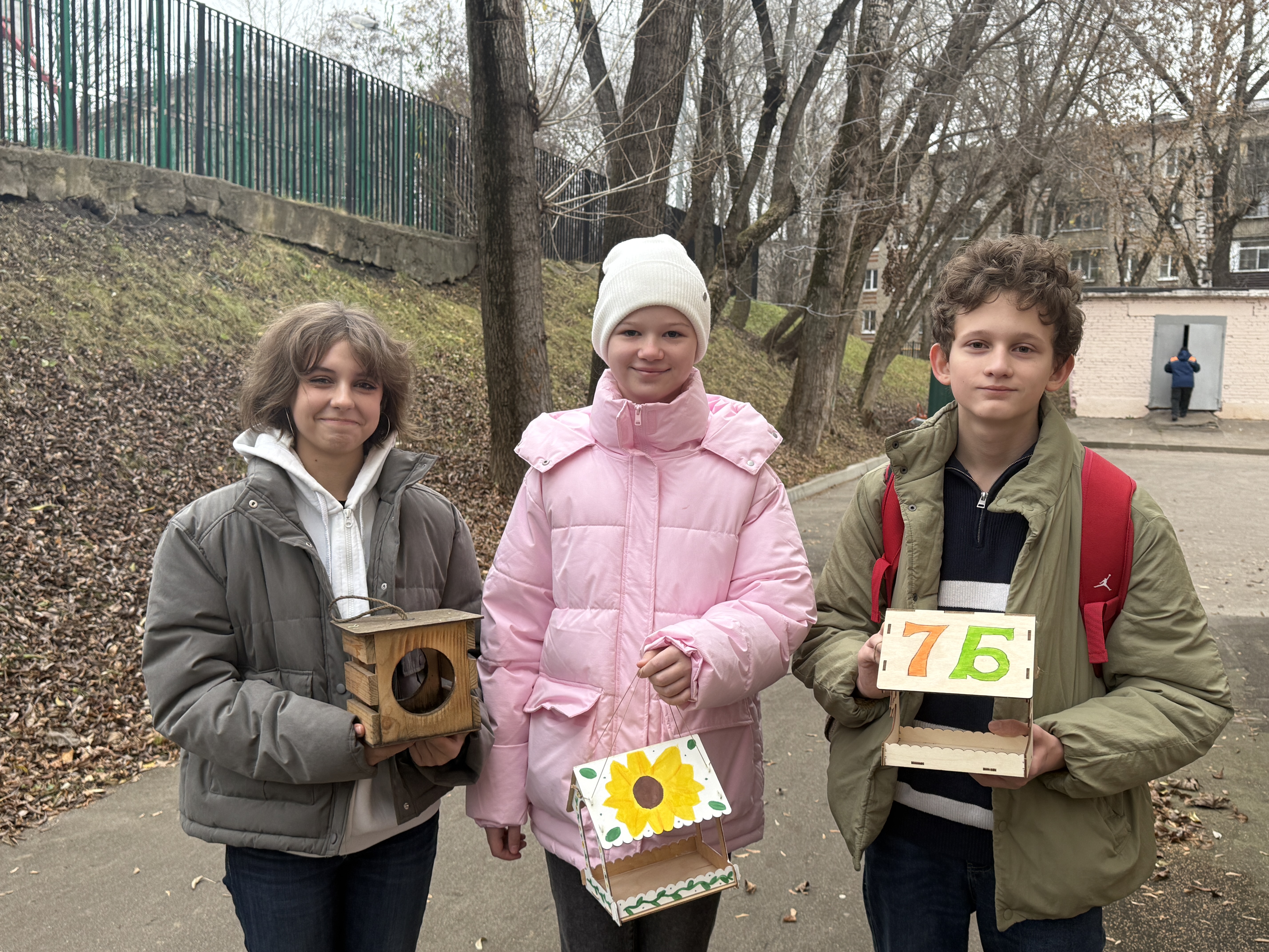 Ученики 5-11 классов дружно объединились, чтобы сделать доброе дело для пернатых. Ребята своими руками смастерили кормушки, которые затем развесили на школьном дворе.